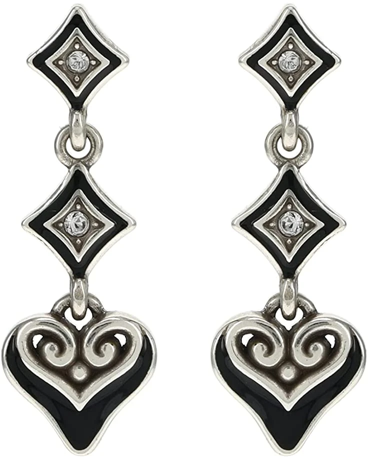 - Frame your face with the beauty of the Brighton® Alcazar Mystique Post Drop Earrings. Featuring fine quality crystals atop swirly filigree hearts, these sweet silver-plated earrings with hand-enameled details are perfectly Brighton in every way.