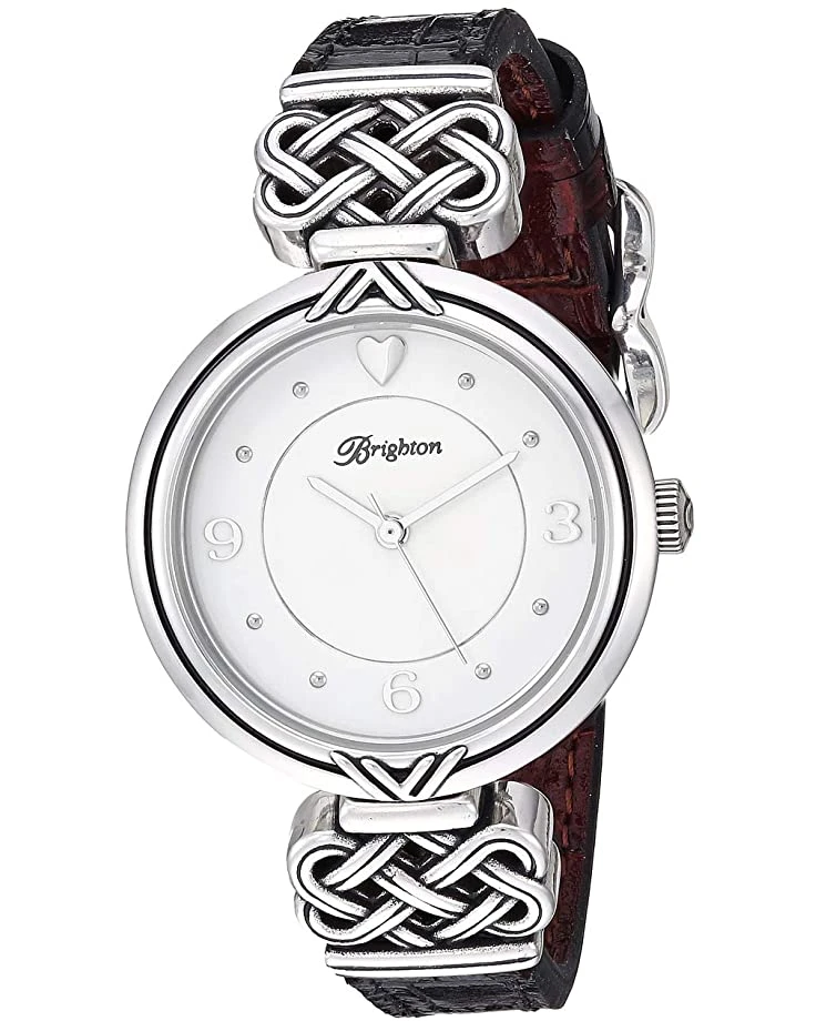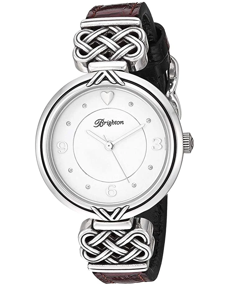 - A Celtic-inspired motif frames a simple, elegant face, with a croco-embossed leather band that reverses to brown or black for ultimate versatility.