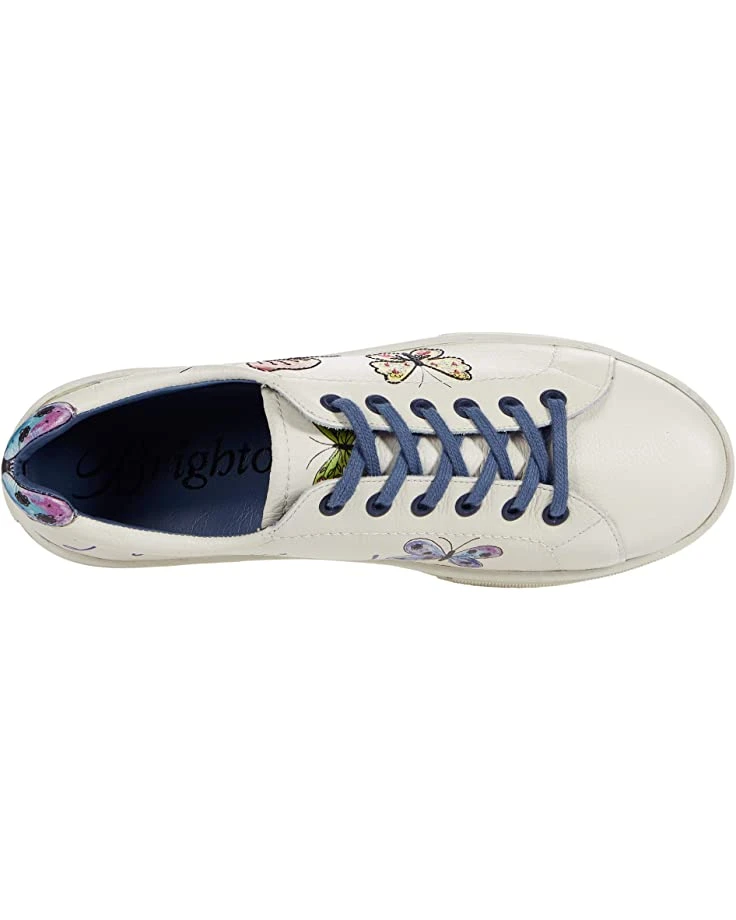 - Feel as light as a butterfly with the Brighton® Flyme Sneaker resting on a comfortable rubber sole, secure with metal-eyelets over a lace-up style sneaker, and beautifully designed with butterflies that seem to be frolicking in the wind.