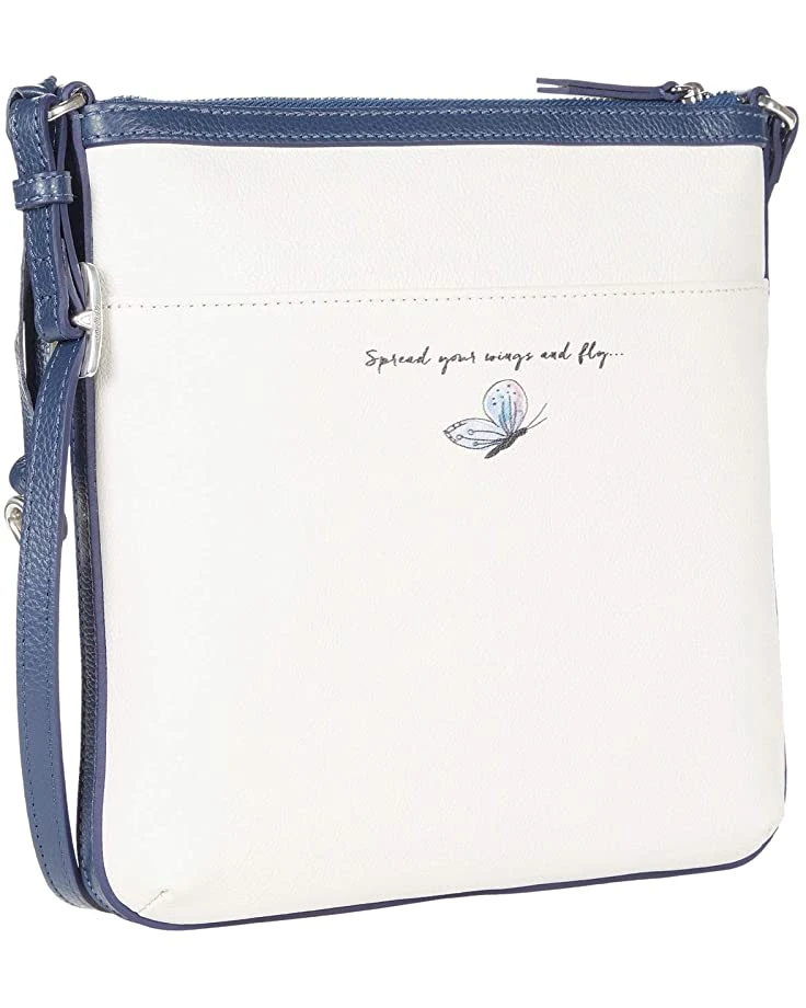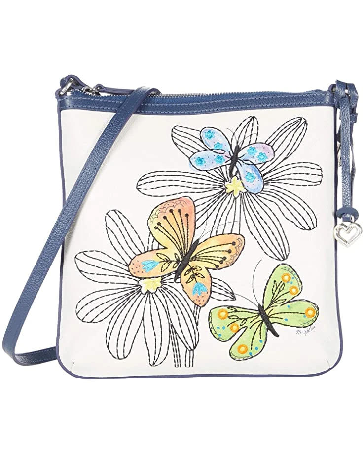 - This rich leather messenger bag is digitally printed with Brighton’s designer Catherine Hong’s sunny-hued watercolor artwork and touches of embroidery that bring three butterflies to life.