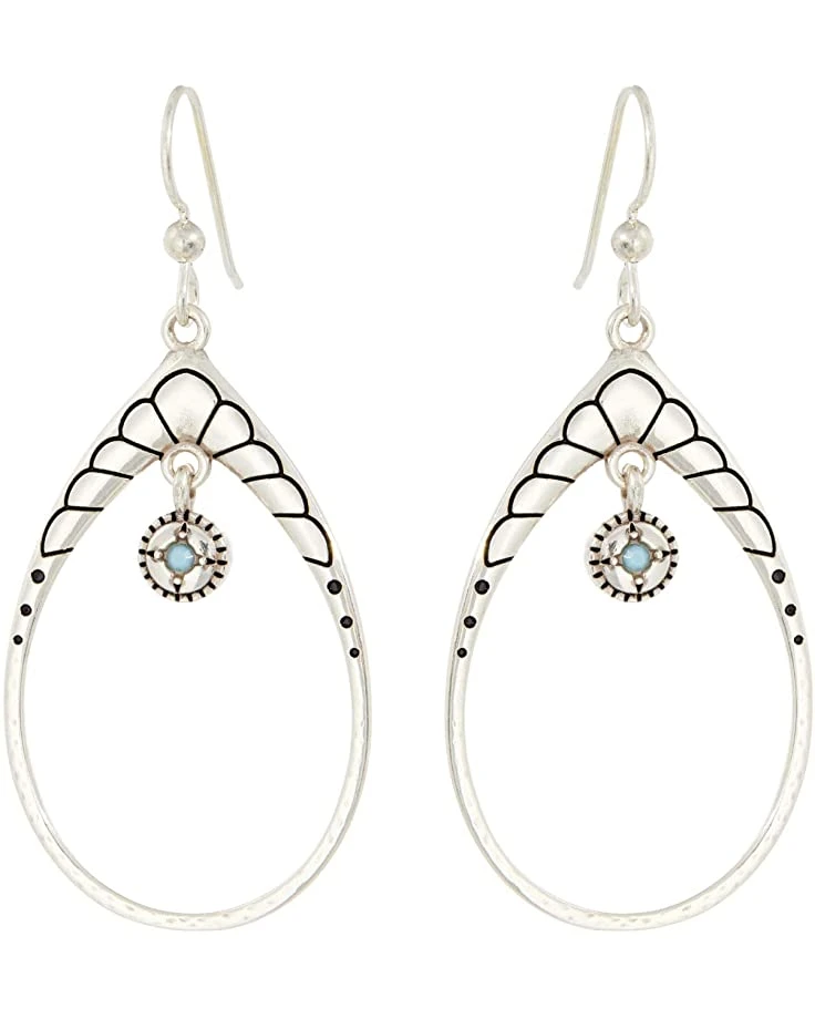 - Bring something new to your style wearing the Brighton® Marrakesh Mystique Teardrop French Wire Earrings featuring a silver plated metal with engraved detailing and set turquoise stone accent.