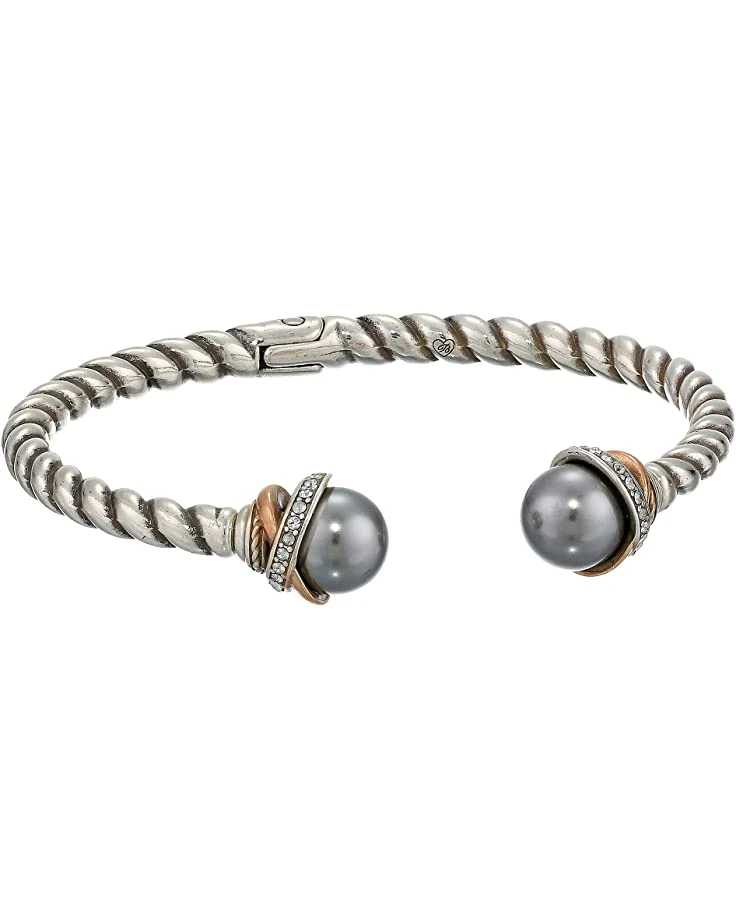- Decadent handmade Japanese gray pearls add luster and luxe to this rope hinged bangle. Finished with a tumble of mixed metal and Swarovski encrusted rings from the Neptune’s Rings Collection.