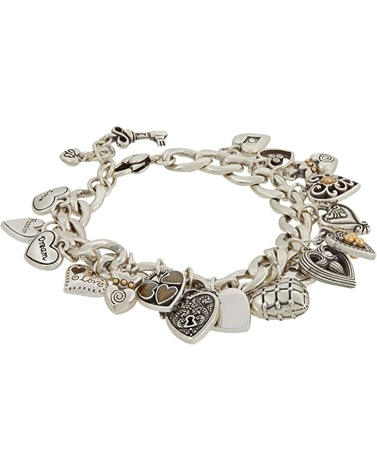 - The chunk link Brighton® One Heart Charm Bracelet features clustered heart charms of enamel and Swarovski® crystals.